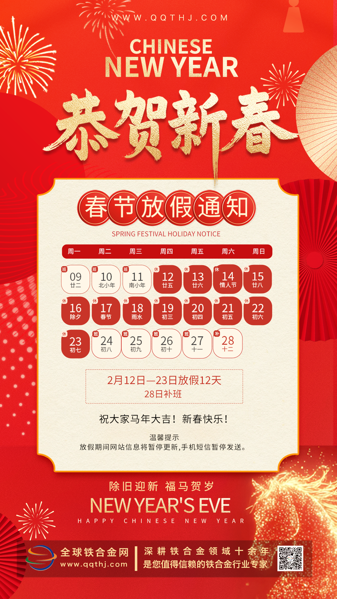 2026马年春节放假通知